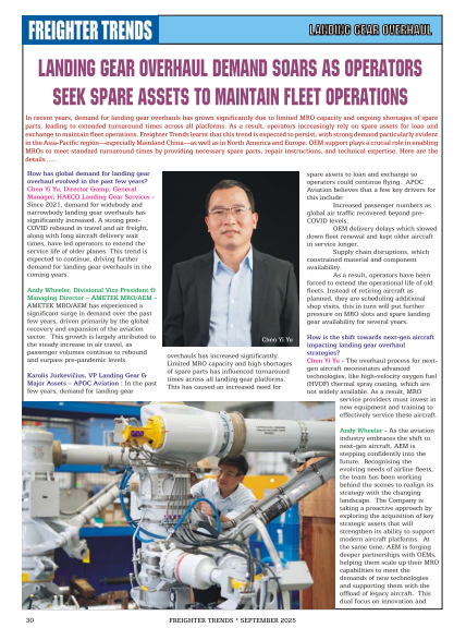 In the latest issue of Freighter Trends, Karolis Jurkevičius, VP Landing Gear & Major Assets at APOC Aviation, shares his insights about how the landing gear overhaul demand has increased significantly in the past few years.